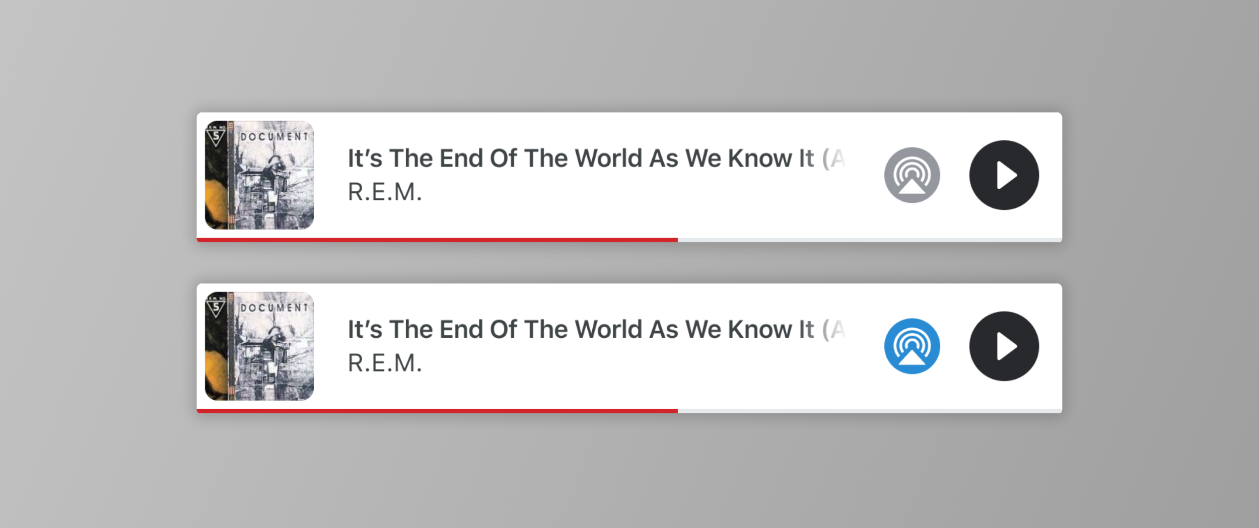 I shared some early concepts with the team (example seen above), but some were concerned the tap area needed to launch the connections menu interfered with the existing swipe-to-skip gesture. Based on data I collected from competitor analysis, I knew Spotify already had an exposed connections entry point and a similar gesture to skip to the next song. An easy way to validate our mini player concept without extending timelines was to test their experience instead.